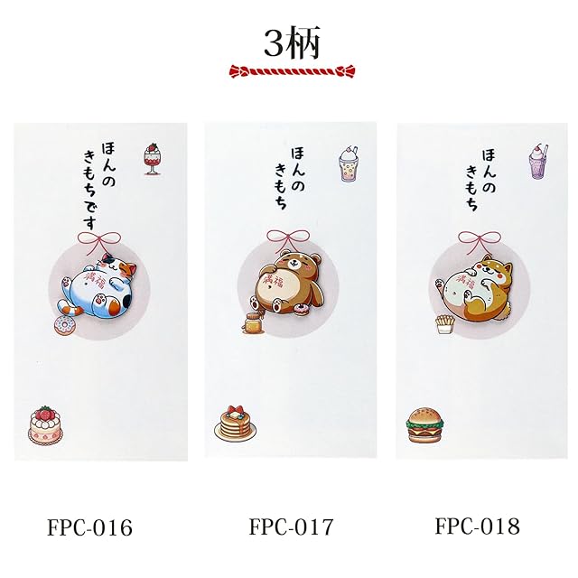 伊予結納センター 金封 FPCシリーズ ペーパーカットマスコット付 和紙封筒タイプ ほんのきもちです 満福 ねこ 約17.5×9cm 日本製 FPC-016
