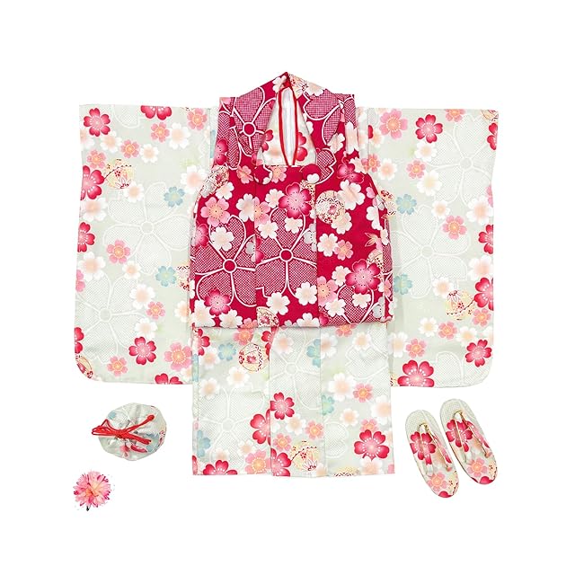[セット内容]:被布/着物/伊達衿/長襦袢/髪飾り/巾着/草履/腰紐/足袋/専用化粧箱 [品質と素材]:ポリエステル100% [生産国]:中国