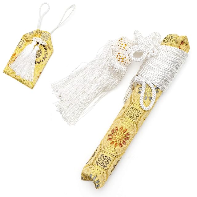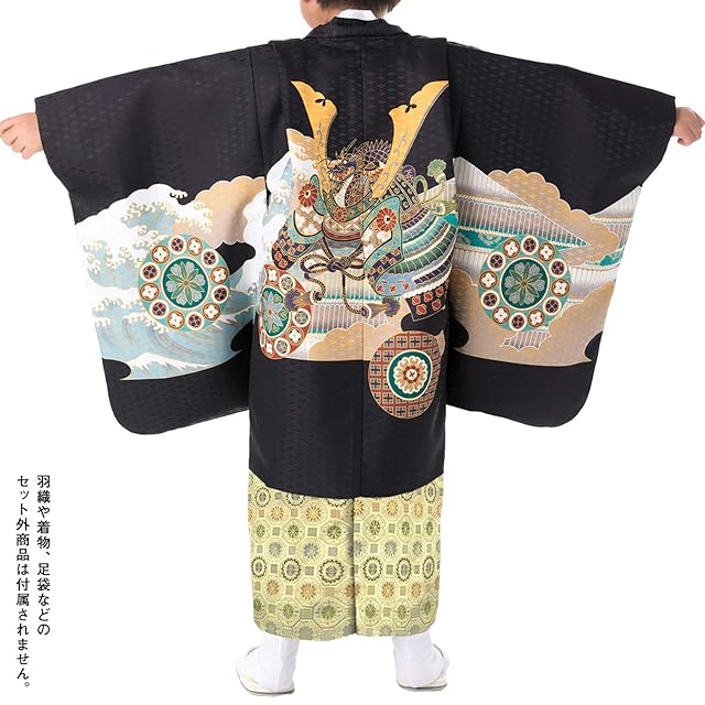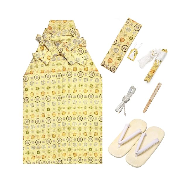 [KYOETSU] [キョウエツ] 袴小物セット 七五三用 5歳用 7点セット(袴、角帯、懐剣、雪駄、羽織紐、お守り、白扇子) ボーイズ (袴 紐下60cm, 金襴)