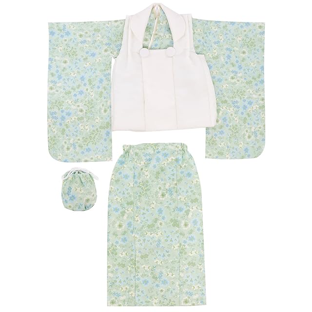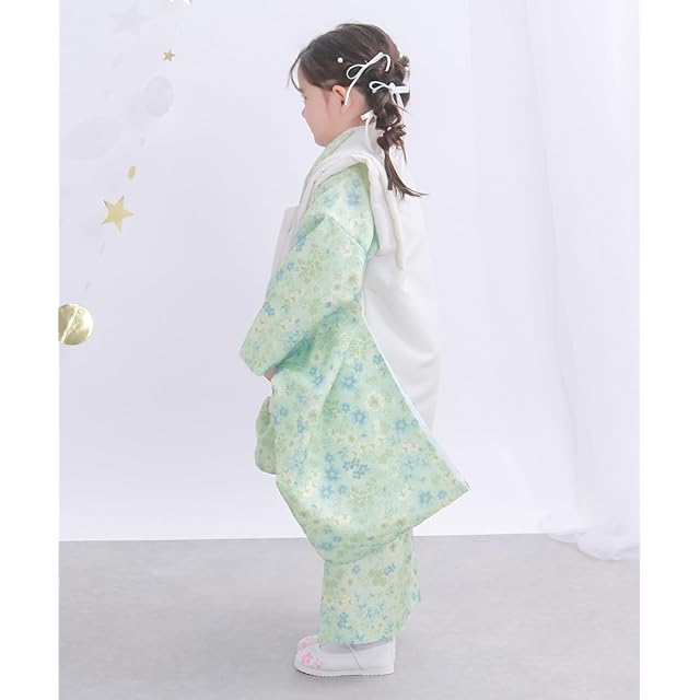 商品名:[KYOETSU] [キョウエツ] 自宅で簡単着付け 七五三 3歳 女の子 着物 セパレート 二部式 セット 被布 小物 フルセット 753 4点セット くすみ (11.翠風の綴り, 90-100cm)