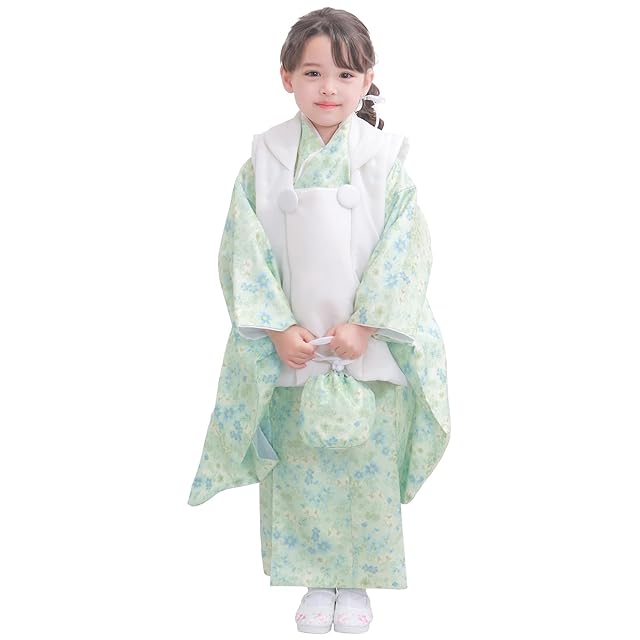 [KYOETSU] [キョウエツ] 自宅で簡単着付け 七五三 3歳 女の子 着物 セパレート 二部式 セット 被布 小物 フルセット 753 4点セット くすみ (11.翠風の綴り, 90-100cm)