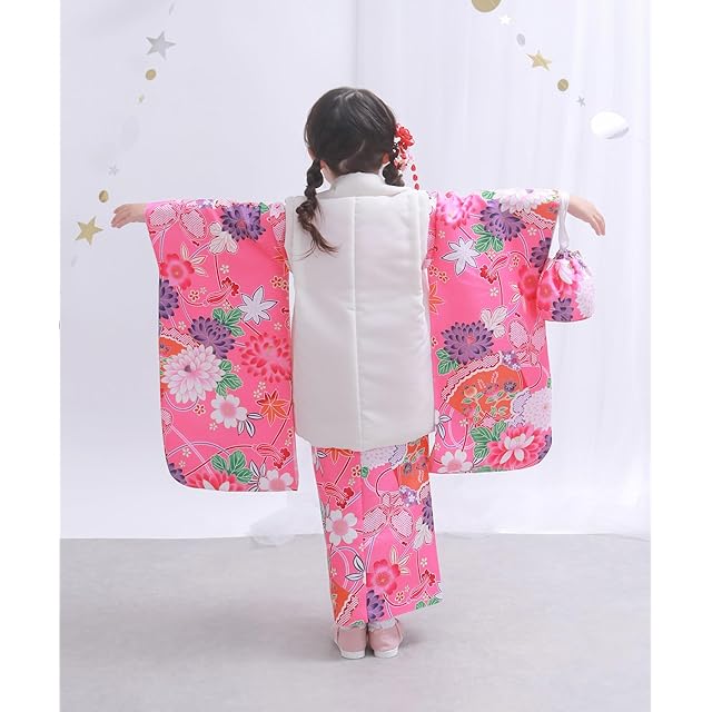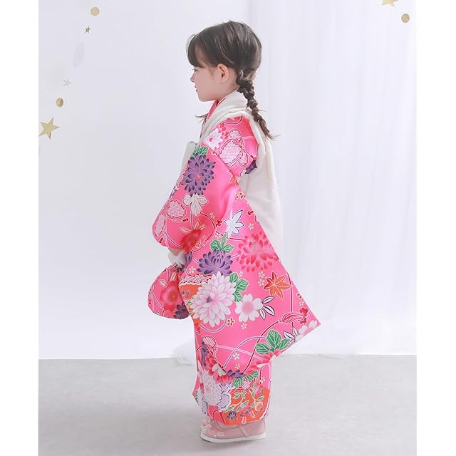 商品名:[KYOETSU] [キョウエツ] 自宅で簡単着付け 七五三 3歳 女の子 着物 セパレート 二部式 セット 被布 小物 フルセット 753 4点セット (5.夢見桃紫花, 90-100cm)