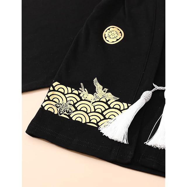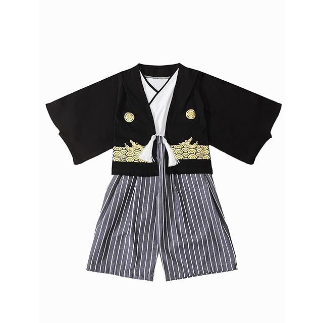 [SHELISTEN] 男の子 袴セット 子供 着物 甚平 七五三 夏祭り 子供の日 (ブラック,130)