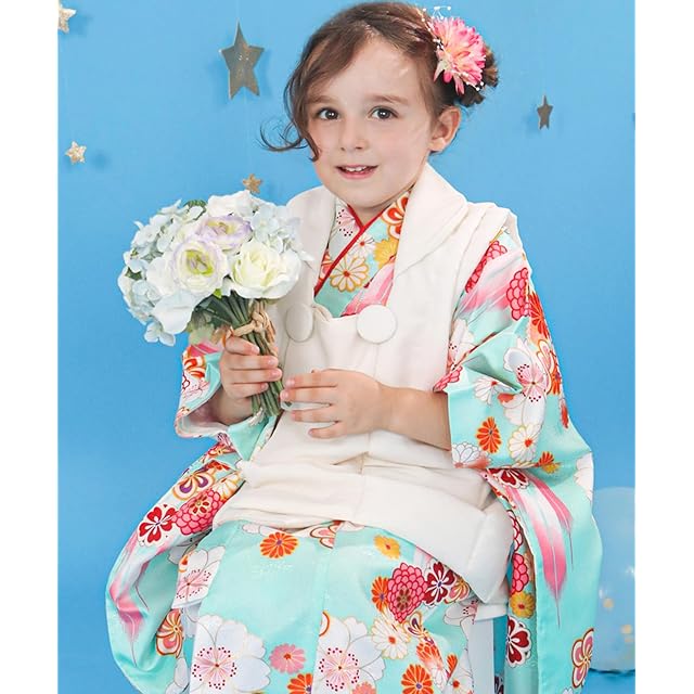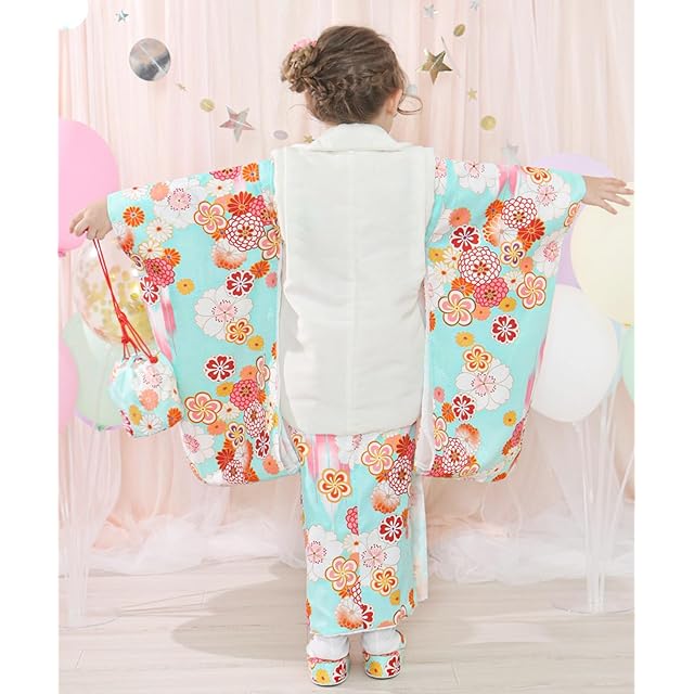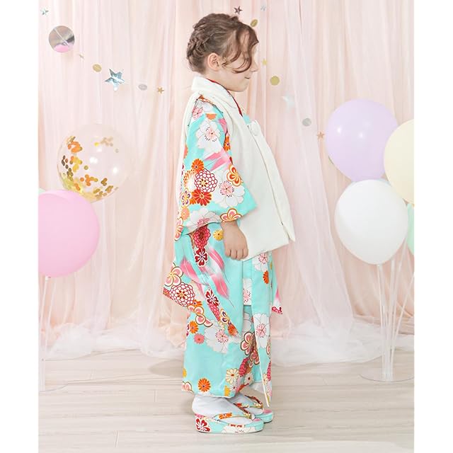 商品名:[KYOETSU] [キョウエツ] 七五三 3歳 女の子 ガールズ 着物 セット 被布 無地被布 小物 フルセット 753 (4.蒼花の幻想, 90-100cm)