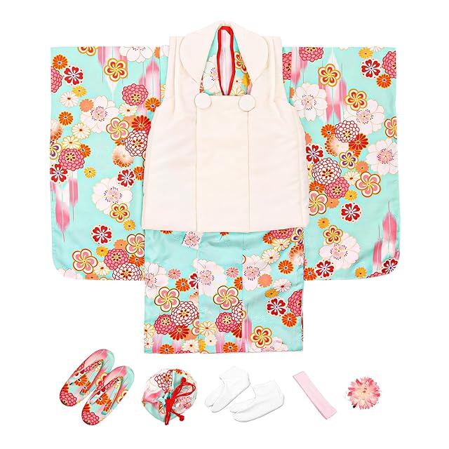 [セット内容]:被布/着物/伊達衿/長襦袢/髪飾り/巾着/草履/腰紐/足袋/専用化粧箱