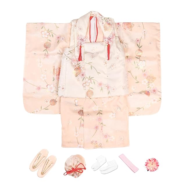 [セット内容]:被布/着物/伊達衿/長襦袢/髪飾り/巾着/草履/腰紐/足袋/専用化粧箱 [品質と素材]:ポリエステル100% [生産国]:中国