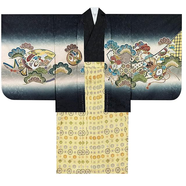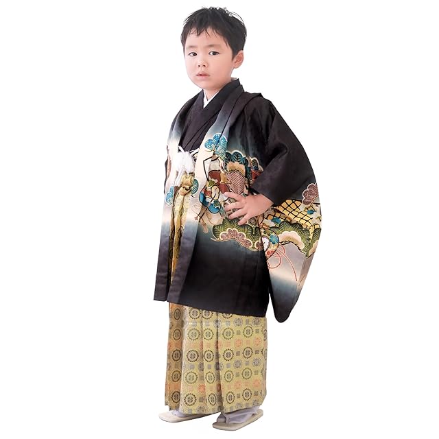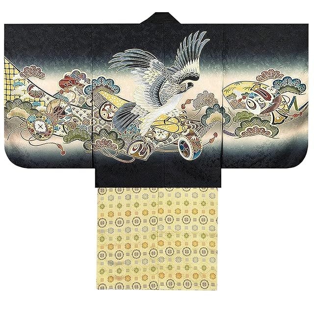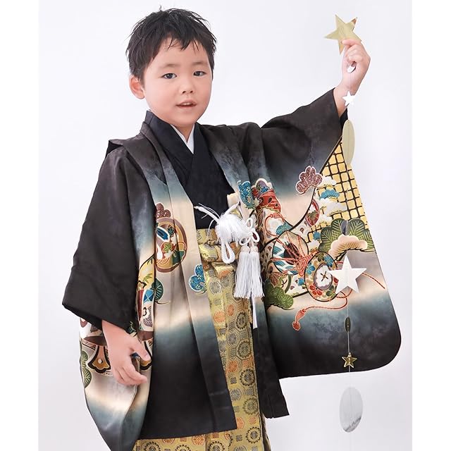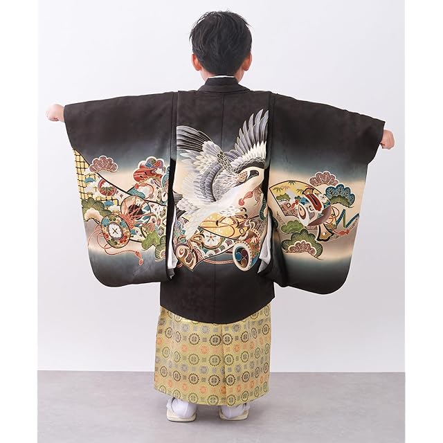 商品名:[KYOETSU] [キョウエツ] 七五三 5歳 男の子 着物 セット 羽織 袴 フルセット 753 絵羽 A ((04)鷹太鼓-黒+金襴)