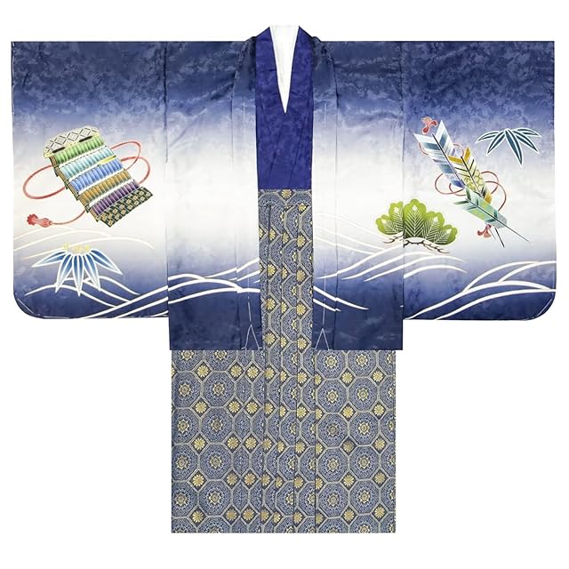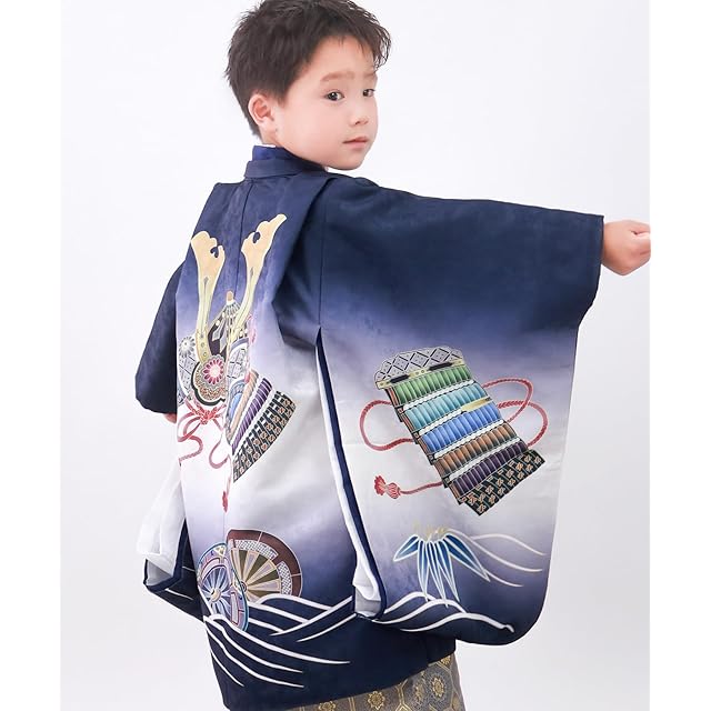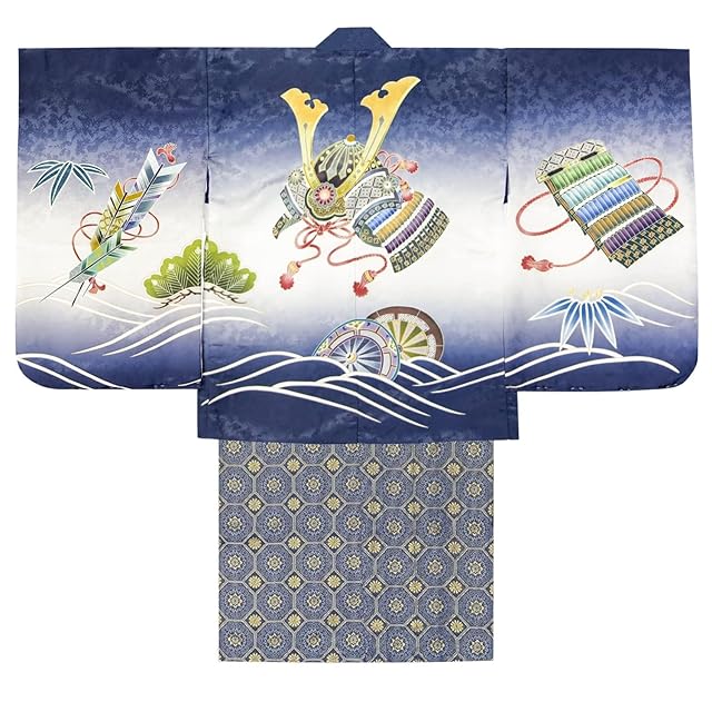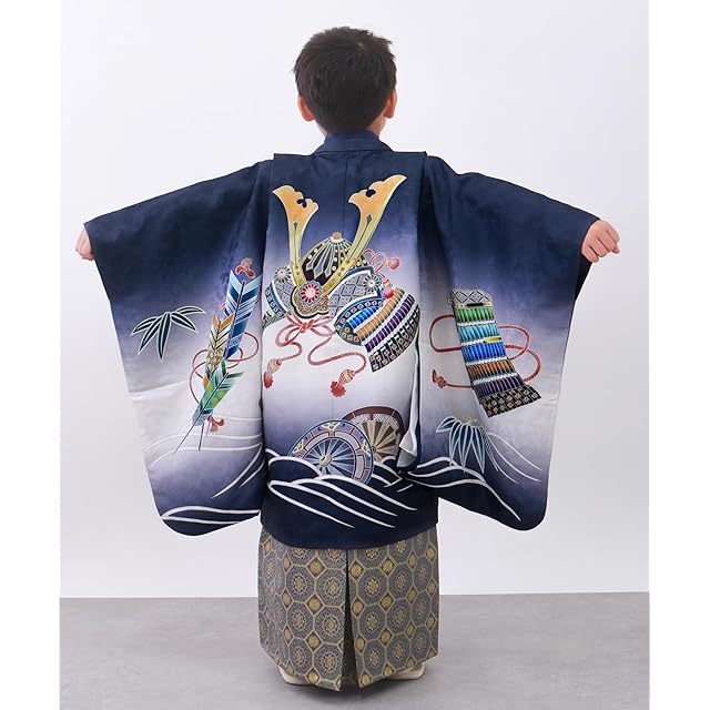 商品名:[KYOETSU] [キョウエツ] 七五三 5歳 男の子 着物 セット 羽織 袴 フルセット 753 絵羽 A ((14)兜-紺+藍鼠)