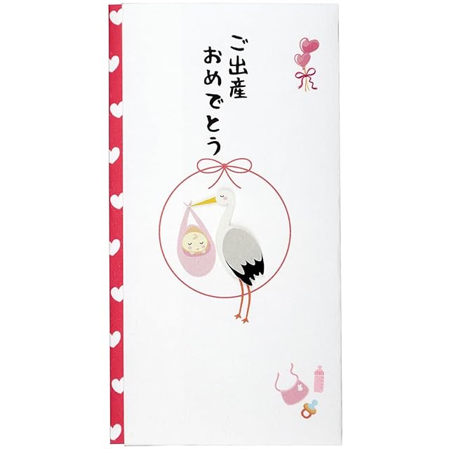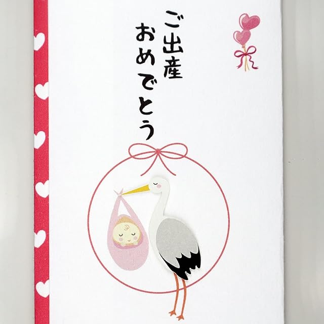 伊予結納センター 金封 TPCシリーズ ペーパーカットマスコット付祝儀袋 ご出産おめでとう 鶴 ピンク 約9.5×17.8cm 日本製 ホワイト TPC-006