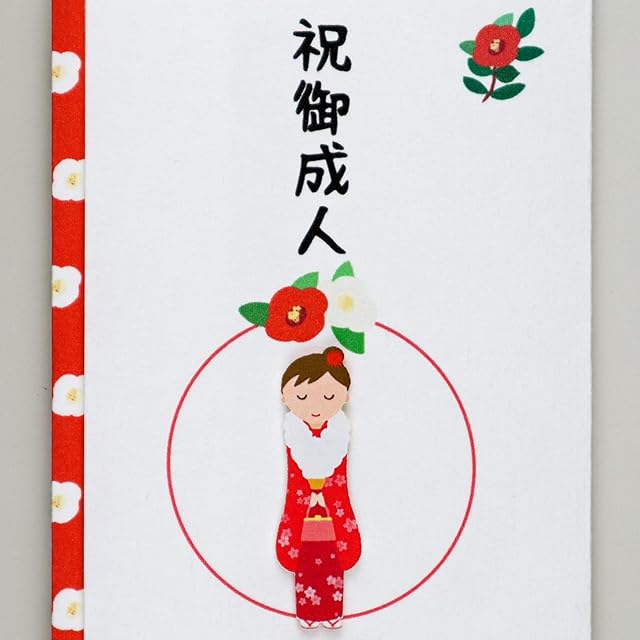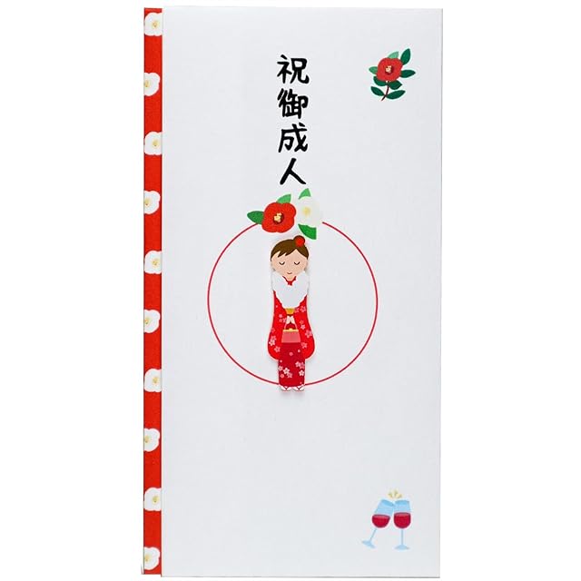 伊予結納センター 金封 TPCシリーズ ペーパーカットマスコット付祝儀袋 祝御成人 女性 約9.5×17.8cm 日本製 ホワイト TPC-056