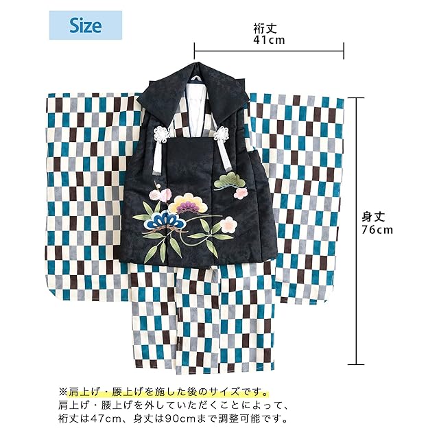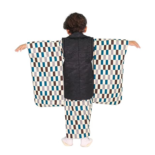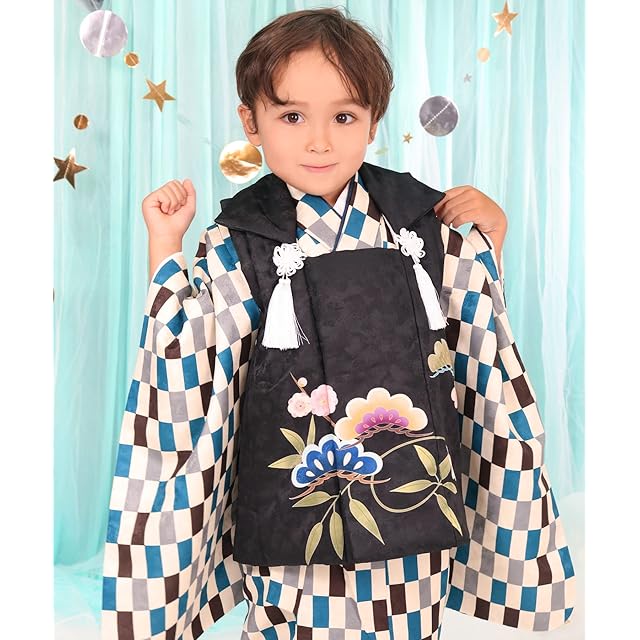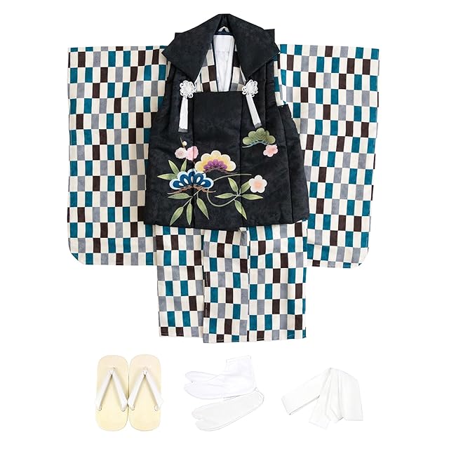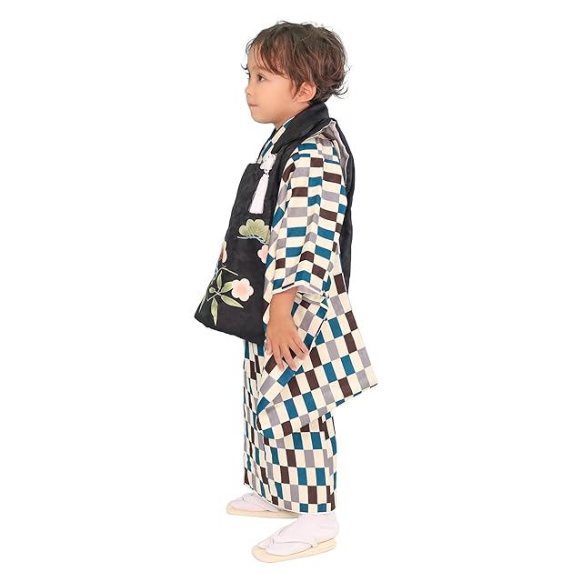 商品名:[KYOETSU] [キョウエツ] 七五三 3歳 着物 男の子 被布 フルセット しちごさん (3.聡慧の変わり市松, 90-100cm)
