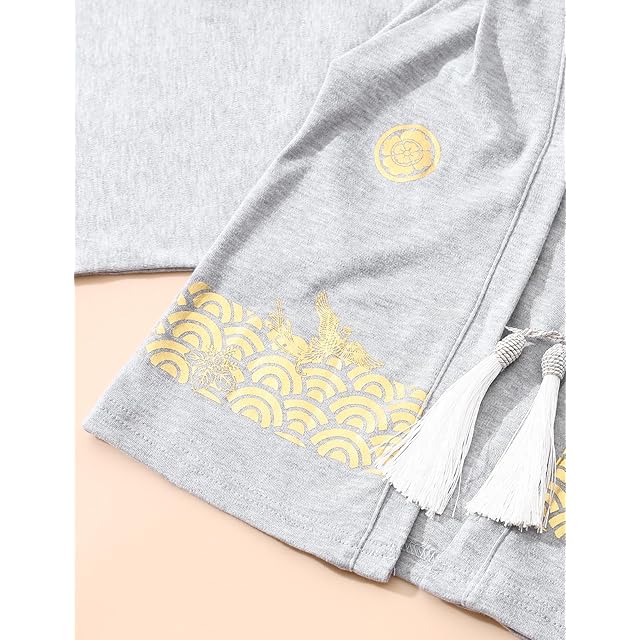 [SHELISTEN] 男の子 袴セット 子供 着物 甚平 七五三 夏祭り 子供の日 (グレー,130)