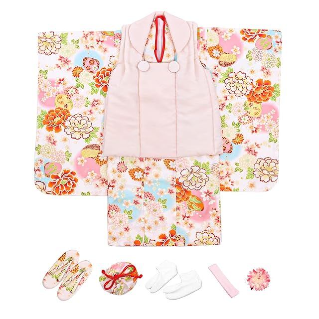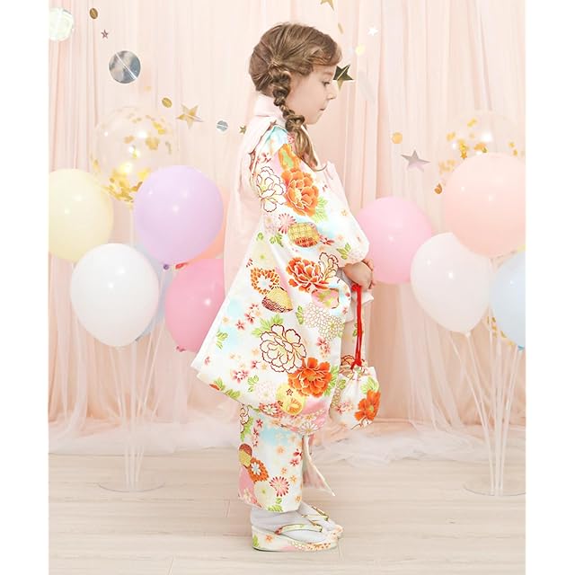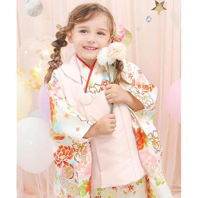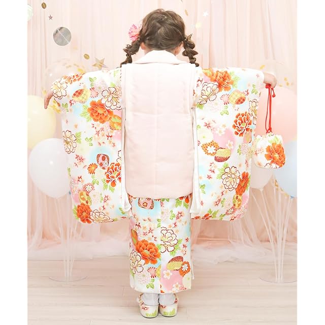 商品名:[KYOETSU] [キョウエツ] 七五三 3歳 女の子 ガールズ 着物 セット 被布 無地被布 小物 フルセット 753 (7.淡彩花舞, 90-100cm)