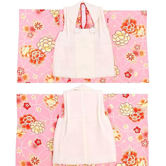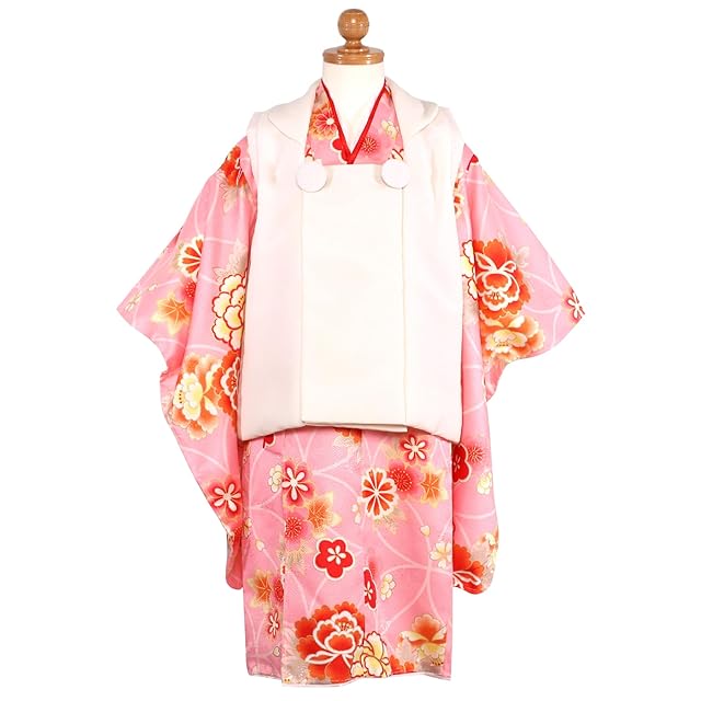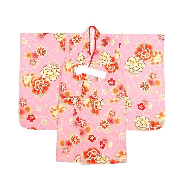 商品名:[KYOETSU] [キョウエツ] 七五三 3歳 女の子 ガールズ 着物 セット 被布 無地被布 小物 フルセット 753 (1.桃花舞七宝)
