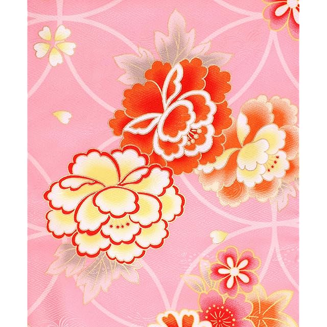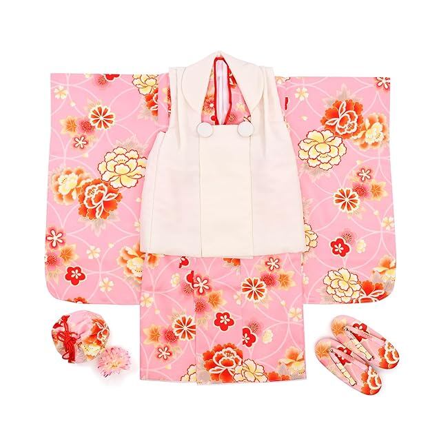 [KYOETSU] [キョウエツ] 七五三 3歳 女の子 ガールズ 着物 セット 被布 無地被布 小物 フルセット 753 (1.桃花舞七宝)