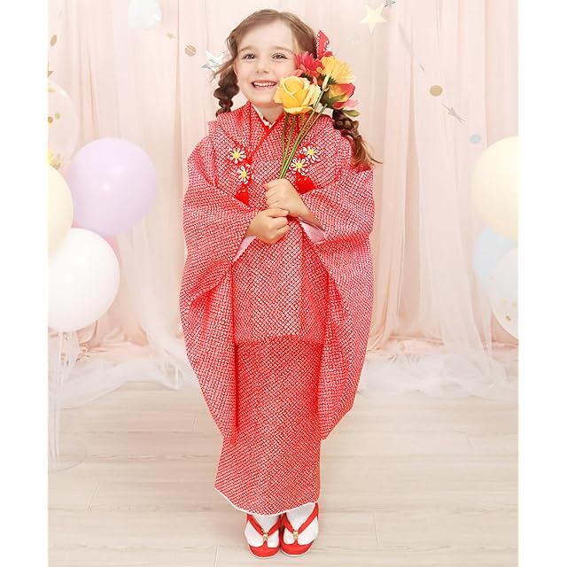 [セット内容]:被布/着物/伊達衿/長襦袢/刺繍半衿/髪飾り/巾着/草履/腰紐/足袋/専用化粧箱