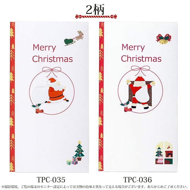伊予結納センター 金封 TPCシリーズ ペーパーカットマスコット付祝儀袋 Merry Christmas 約9.5×17.8cm 日本製 ホワイト TPC-036