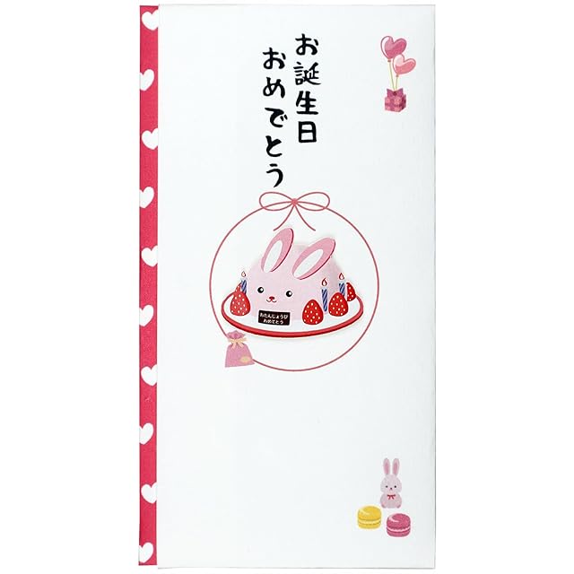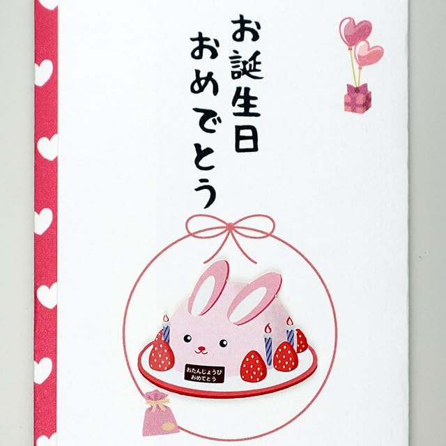 伊予結納センター 金封 TPCシリーズ ペーパーカットマスコット付祝儀袋 お誕生日おめでとう うさぎ 約9.5×17.8cm 日本製 ホワイト TPC-012