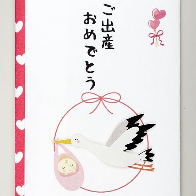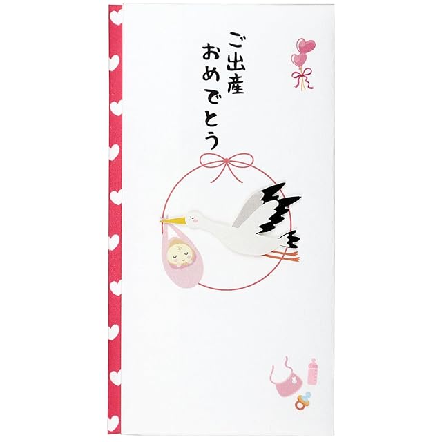 伊予結納センター 金封 TPCシリーズ ペーパーカットマスコット付祝儀袋 ご出産おめでとう 鶴 赤 約9.5×17.8cm 日本製 ホワイト TPC-004