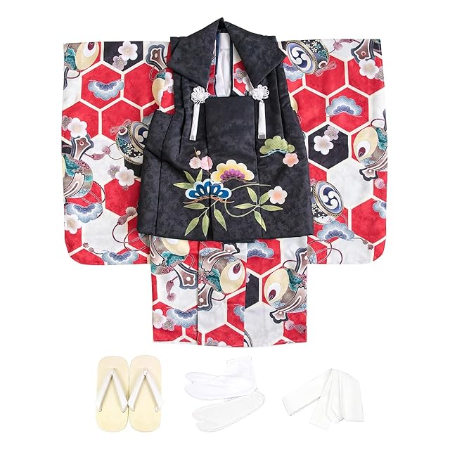[KYOETSU] [キョウエツ] 七五三 3歳 着物 男の子 被布 フルセット しちごさん (1.緋色の亀甲小槌, 90-100cm)