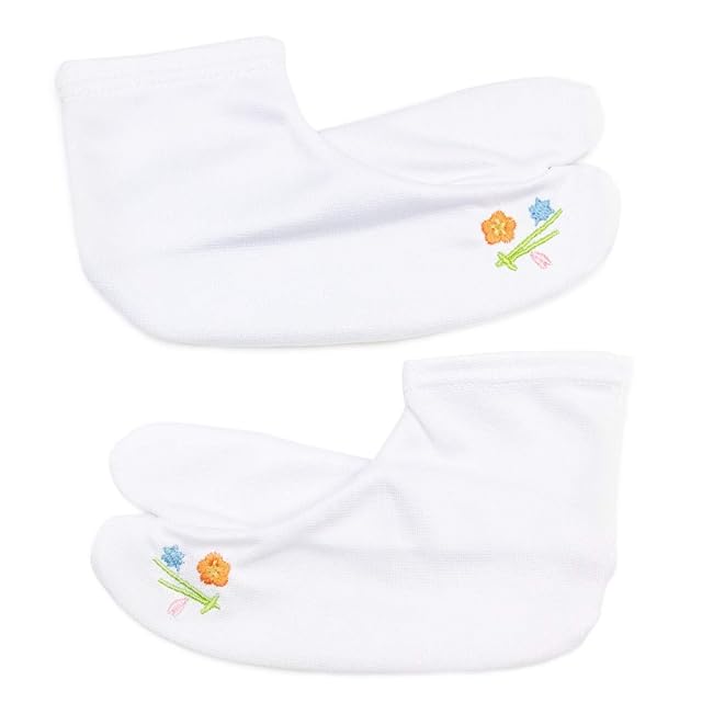 [KYOETSU] [キョウエツ] 足袋 刺繍 和柄 足袋カバー 滑り止め付き ガールズ (13-14cm, A.吹き寄せ)