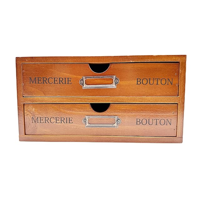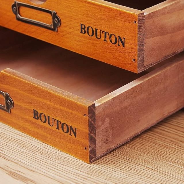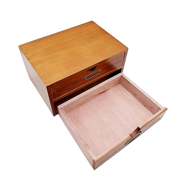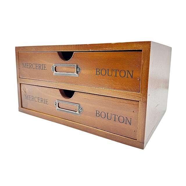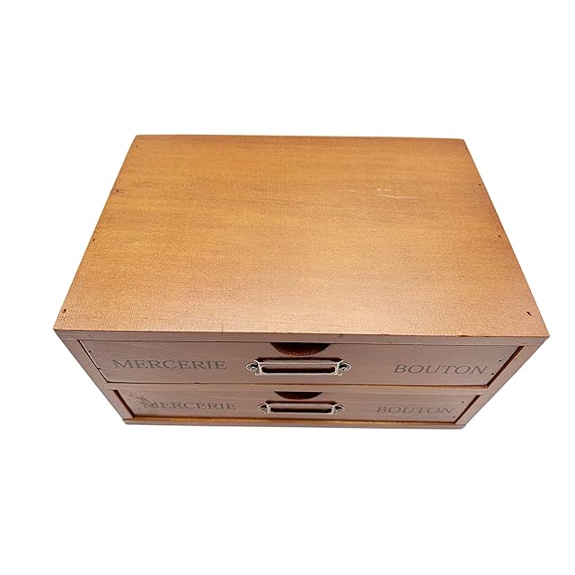 Ansimple ビンテージ風 ナチュラルな 木製 引出し付き 収納ボックス 木箱 木製引き出し 小物整理整頓 机上収納ラック オシャレ雑貨 家庭・事務所・工場・オフィス (2段式引き出し)