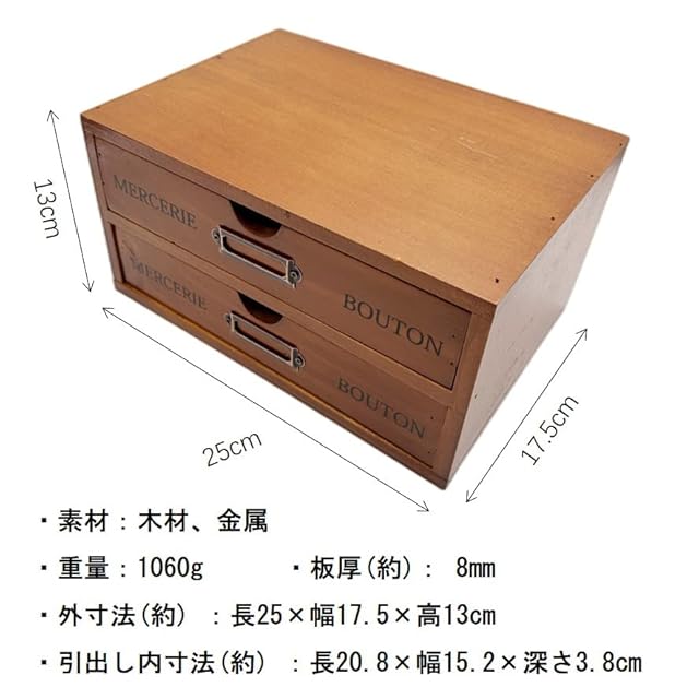 外寸法(約) :長25×幅17.5×高13cm。引出し内寸法(約) :長20.8×幅15.2×深さ3.8cm。