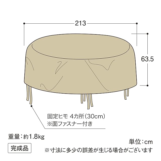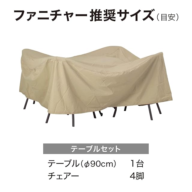 固定ヒモ4カ所(面ファスナー付)※推奨ファニチャーサイズ(目安):[ダイニングテーブル]Φ90cm×1台[チェアー]4脚