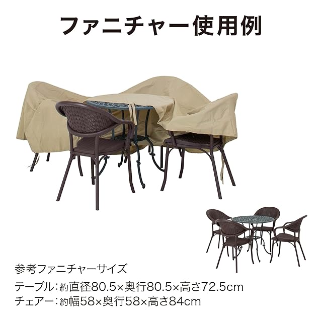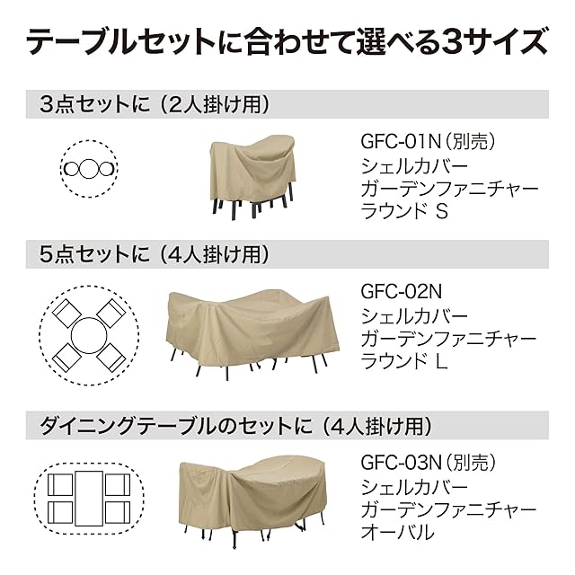 大切なガーデンファニチャーを強い日差しや汚れから守るシェルカバー。長く使っていただくため、ファニチャー使わないときはカバーをかけてご使用ください。