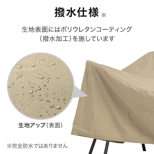 生地に撥水処理を施していますが、防水性はありません。生地が雨などで濡れた場合、内部に水が染み込むことがあります。濡れたまま放置せずに拭き取ってください。洗濯機を使用しないでください。汚れを取り除く際は、ブラシや固くしぼった布をご使用ください。