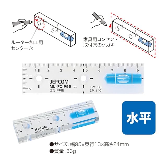 用途:家具用コンセントの取付穴のケガキに、水平のレベル出しに