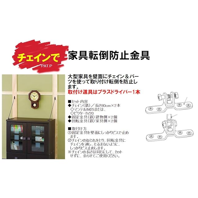 商品名:ニッサチェイン 転倒防止金具 ビクターチェーン80㎝×2本入 黒 S-206