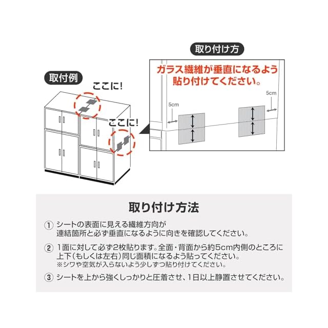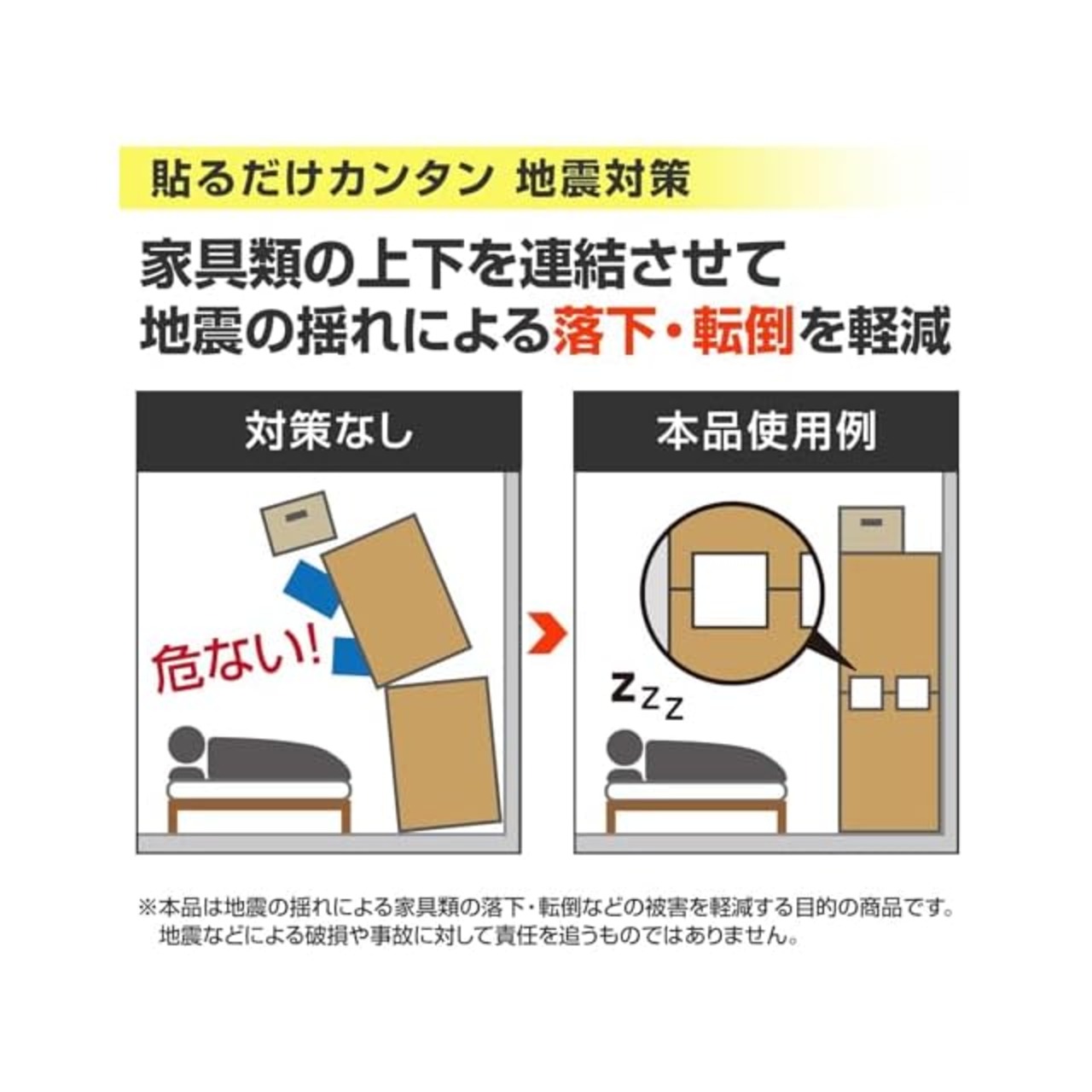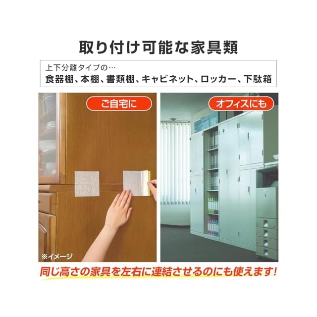 上下・左右に分離した家具に貼るだけでカンタン地震対策!