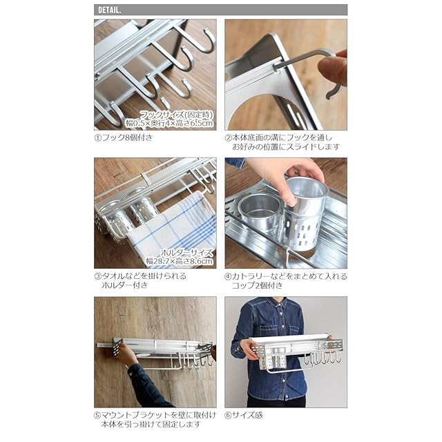 商品名:ダルトン(Dulton) 壁掛け アルミニウム ウォール ラック 高さ190×幅500×奥行155mm ALUMINUM WALL RACK H19-0022