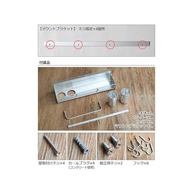 ダルトン(Dulton) 壁掛け アルミニウム ウォール ラック 高さ190×幅500×奥行155mm ALUMINUM WALL RACK H19-0022