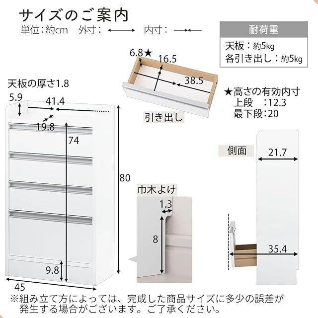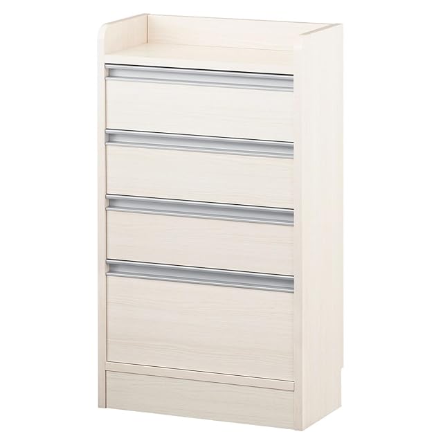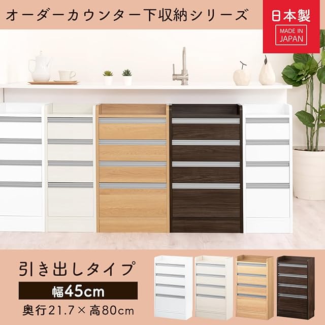 ぼん家具 日本製 カウンター下収納 引き出し チェスト 4段 木製 幅45×奥行21.7×高さ80cm キッチン収納 薄型チェスト おしゃれ ホワイトウッド