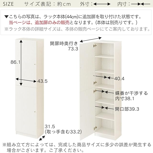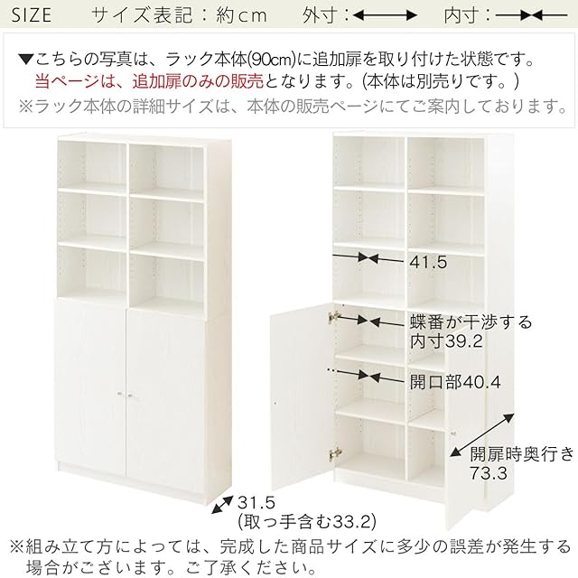ぼん家具 本棚 専用扉 2枚セット 扉のみ 幅44cm 幅90cm 対応扉 追加 扉 後付け ホワイト