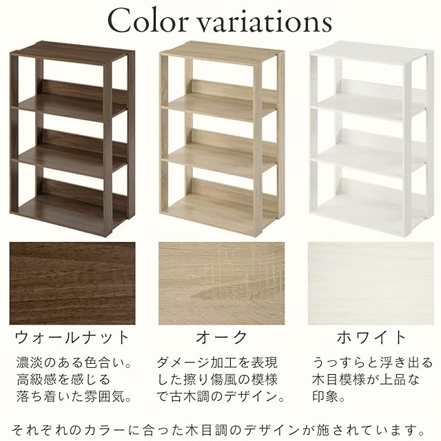 ぼん家具 オープンラック 収納棚 4段 木製 幅60cm ディスプレイ収納 棚 リビング収納 ウッドラック オーク