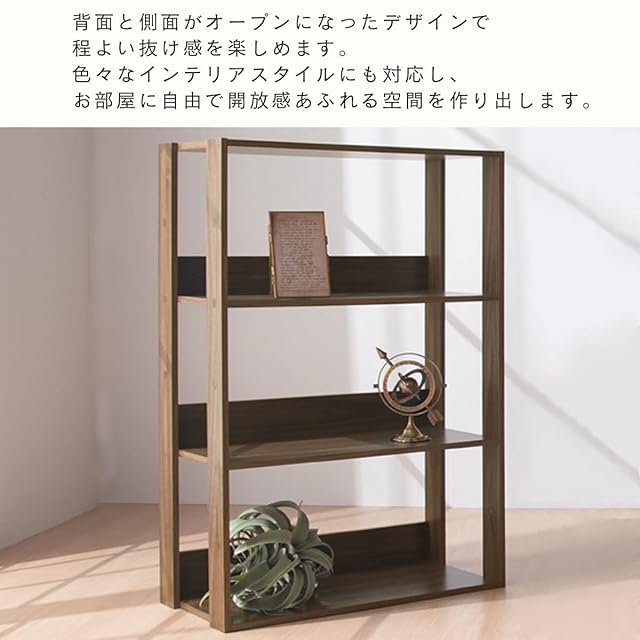 背面と側面がオープンになったデザインで程よい抜け感を楽しめます。色々なインテリアスタイルにも対応し、お部屋に自由で開放感あふれる空間を作り出します。