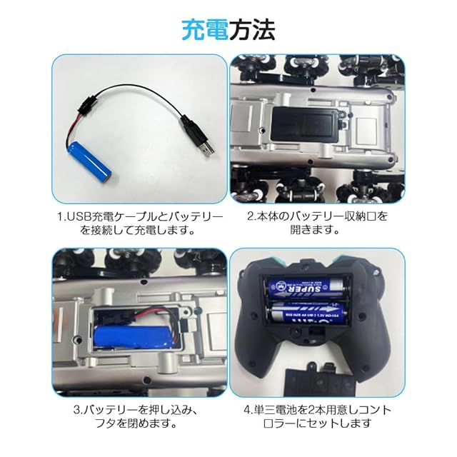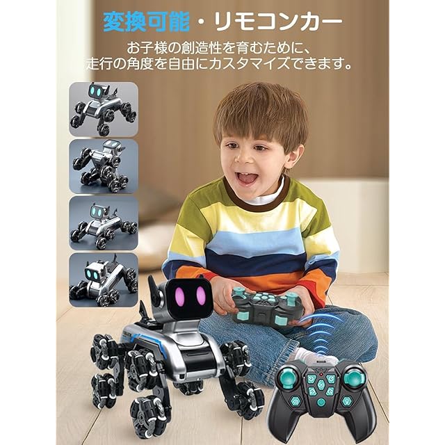 商品名:【2025新登場】ラジコンカー 子供向け 人気 充電式 初心者向け スタントカー 360度回転 ロボット リモコンカー 両面走行 四輪駆動 変形 LEDライト 音楽 バッテリー2個付き 全地形対応 小学生 中学生 誕生日 男の子 プレゼント クリスマス 日本語説明書