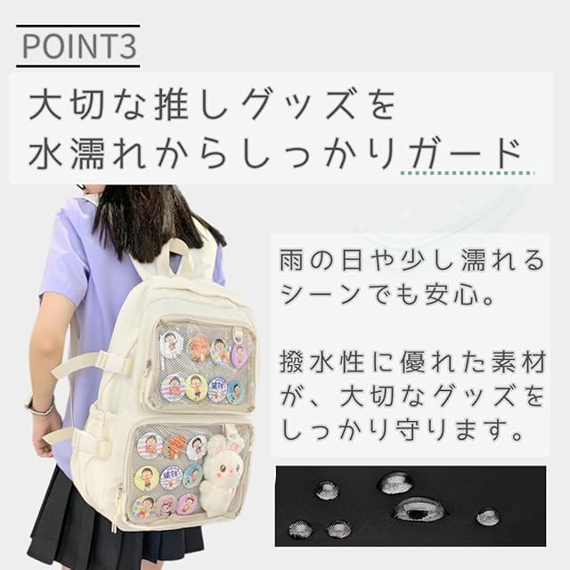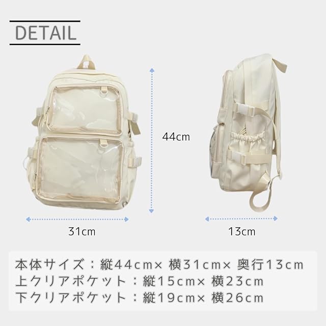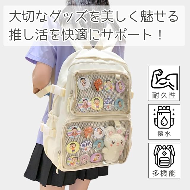 [VIVEL] 推し活リュック 痛バッグ リュック 20L 痛バ 推し活バッグ レディース 可愛い おしゃれ 軽量 透明ポケット ライブ イベント プレゼント (ホワイト)