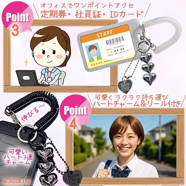 【中高生に大人気!超かわいいパスケース】 今、SNSでも話題の“ハートチャーム付きパスケース”が登場♪ 通学用の定期入れも、自分らしくおしゃれに持ちたいあなたにぴったり! 可愛いだけじゃなく、使いやすさにもこだわった学生向けアイテムです。