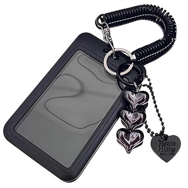 パスケース 可愛い 高校生 女子 定期入れ リール付き ハート チェキホルダー かわいい トレカケース 推し活 韓国 (ブラック)