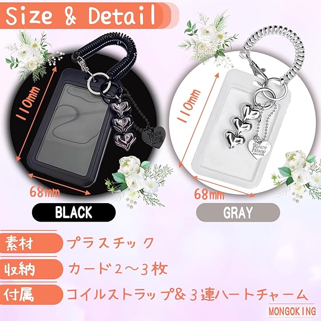 商品名:パスケース 可愛い 高校生 女子 定期入れ リール付き ハート チェキホルダー かわいい トレカケース 推し活 韓国 (ブラック)