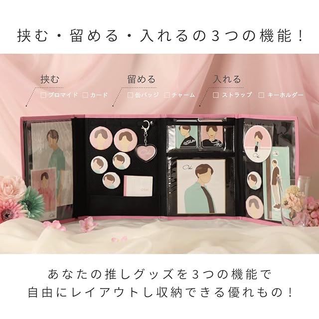 推しのアクスタ、写真、ポストカード、キーホルダー、カードなどを1つにまとめられます。
