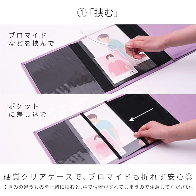 推しを収納した後にきちんと面ファスナー付きベルトでファイルが留まります。畳むとコンパクトなサイズ(B5変形サイズ)