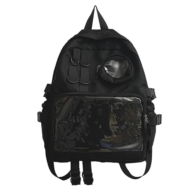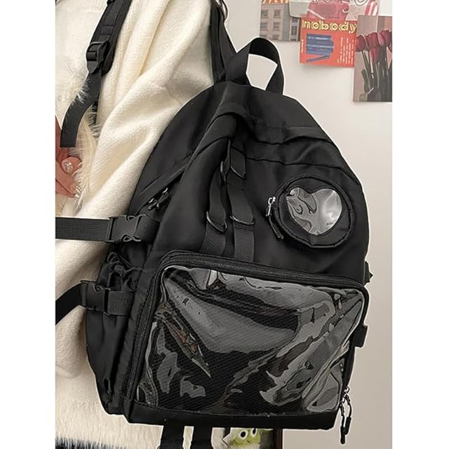[RUIZEN] 痛バッグ 痛リュック 痛バック 軽量 大容量 大きめ 推し活 通学 リュック 透明 男女 女の子 バックパック レディース デコバッグ クリアバッグ JK オタ活 グッズ (BLACK)
