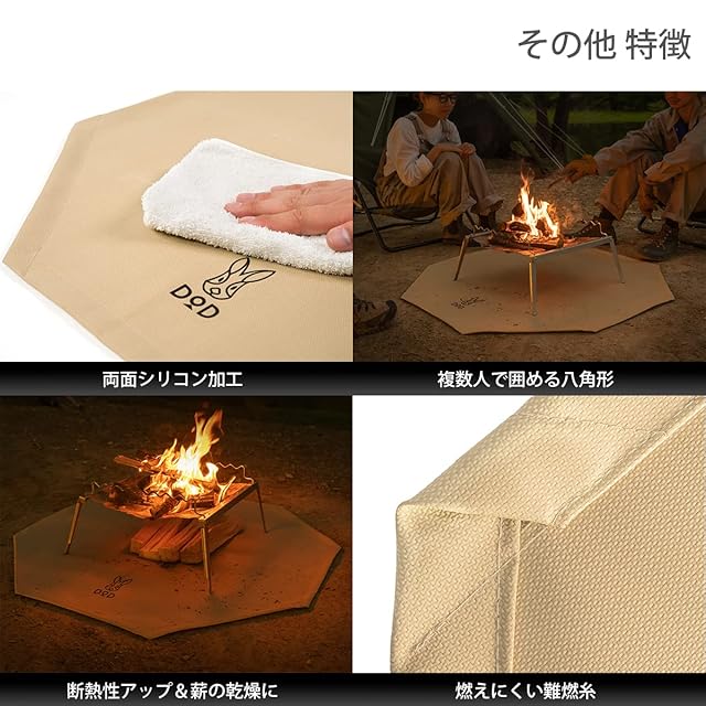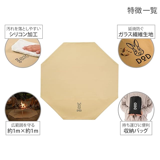 DOD(ディーオーディー) タキビバビデブーM 焚き火シート 0.4mm厚 チクチクしにくい【収納バッグ付】FR3-754-TN タン