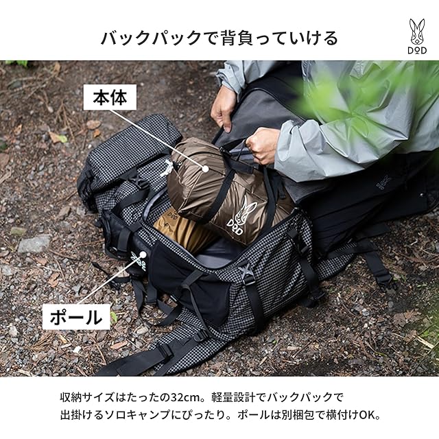 商品名:DOD(ディーオーディー) めんだこテント 徒歩キャン 軽量 快適 ソロ 遮光 テント T1-176-BR