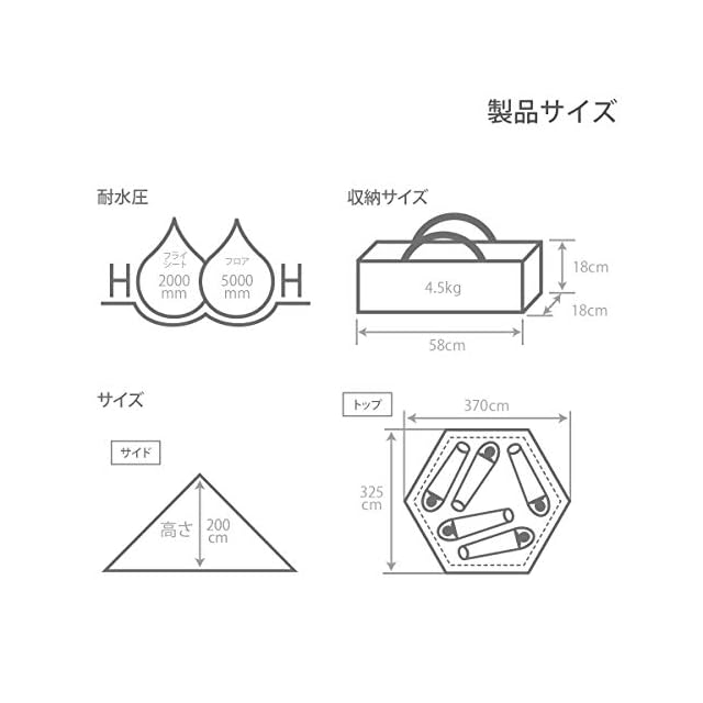 耐水圧:フライシート:2000mm、フロア:5000mm